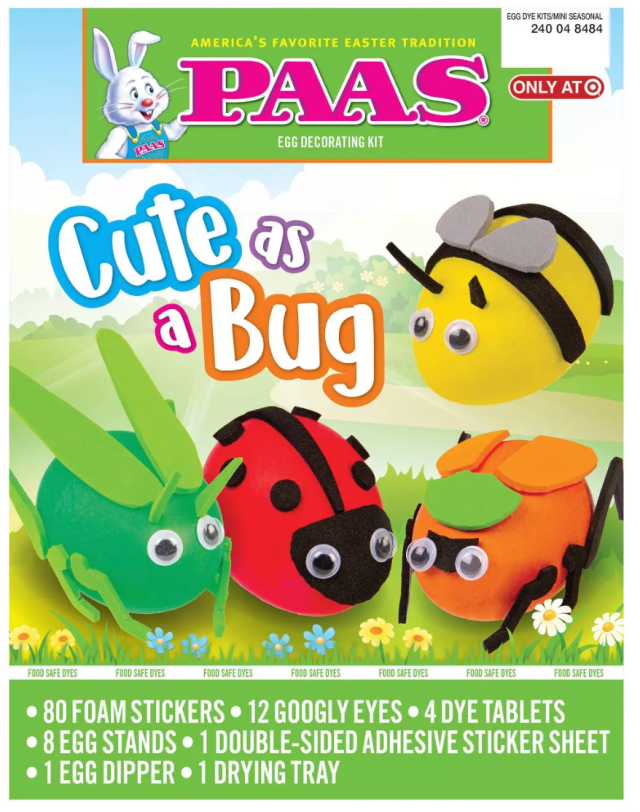 Besides the standard dye tablets, the Cute as a Bug Kit comes with 80 foam stickers, and 12 googly eyes, to make insects like bumblebees, ladybugs and more.
