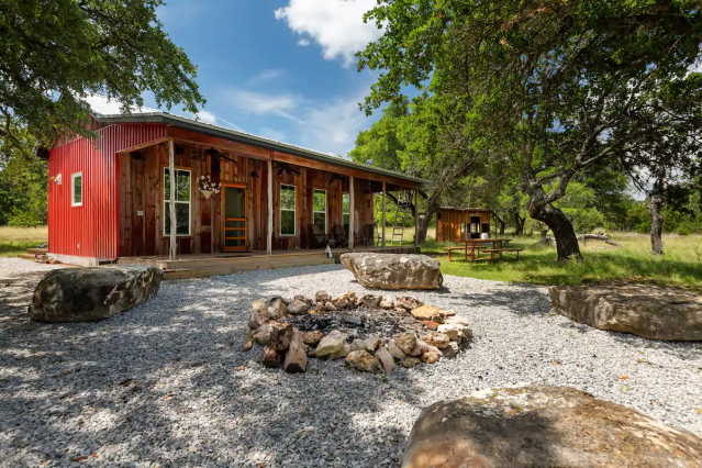 Relax and unwind in this cabin nestled on 36 acres of Rancho Balcones Robles. Take in the views from the hillside, hike the property, feed the donkeys, or explore nearby attractions like Pedernales State Park and the town of Dripping Springs.