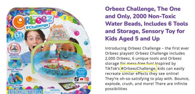 Interestingly, the Orbeez website actually sells an “Orbeez Challenge” set, and references the challenge in its product description. While we’re pretty sure this particular verbiage is not directly related to the current challenge of shooting at random people, it is a good reminder that parents should always be aware of what their kids are watching on social media.