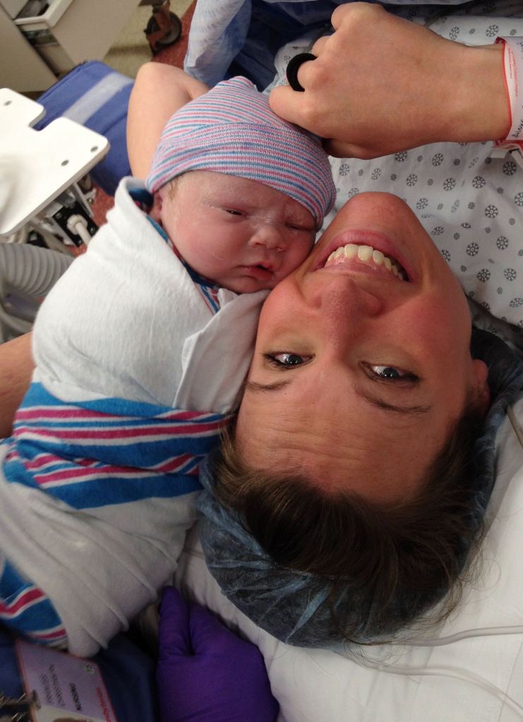 My blood pressure skyrocketed at 38 weeks, but my body wasn’t ready for labor. 2 hospital days later, my body was exactly the same, and we actually almost went home! That night, I woke up with excruciating contractions beyond my wildest imagination. Suddenly, my water broke, and I felt the desperation of a cat clawing its way out of a box. Shaking uncontrollably, I said that if this was the beginning of labor, I needed an epidural to get me through. The nurse prepared to check for any progression whatsoever, but was shocked to find baby’s head under the sheet!