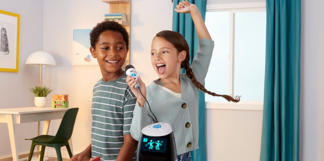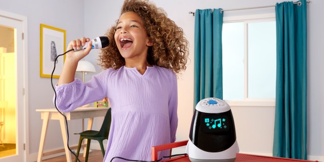 Is there ever a bad time for karaoke? (Ok, fine… maybe bedtime isn’t exactly ideal). The Tobi 2 Interactive Karaoke Machine can connect to an external music device using wireless Bluetooth® technology—playing any song through the built-in speaker. You can lower the volume of the vocals so kids' voices can be front and center. (There’s pitch correction for those working on carrying a tune.) Not only is the singing sensational, but there’s an LED lightshow with Tobi’s fun expressions, built-in songs and beats, voice effects and more. Save up to nine recordings to share your favorite tunes with your crew.