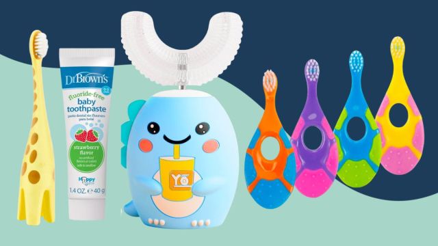 We're loving the cute giraffe shape of this toothbrush designed for little ones up to 3 years. It's really soft on delicate teeth and gums, plus it's easy to grip. Safe-to-swallow toothpaste in a kid-friendly strawberry flavor is included, too. Dr. Brown's Infant-to-Toddler Toothbrush Set ($8.99)—Buy Here!