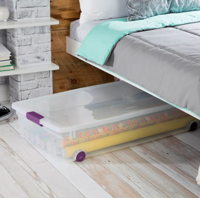 The space under your bed or your kids’ bed is usually underutilized, so invest in a few basic storage containers and push toys out of sight. This is a good way to keep a rotation of toys going. Every once in a while, swap out what’s in the container.