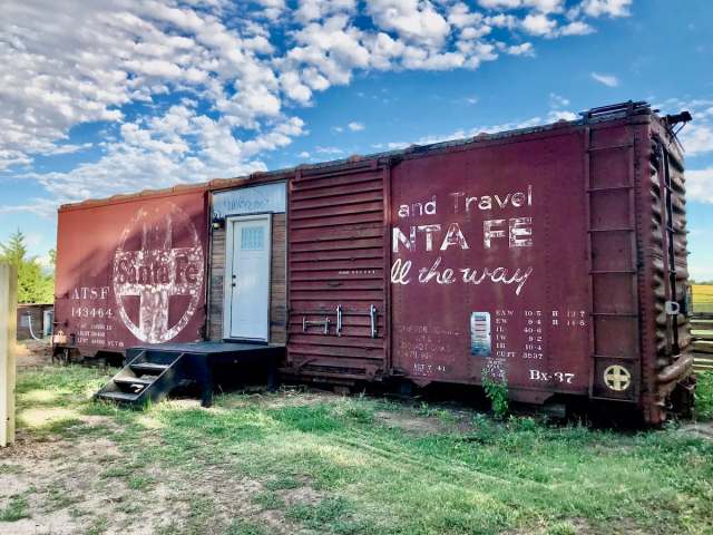 This boxcar was built in 1941 and your family will love booking it for a few nights. You will have the entire boxcar to yourself with a pool and beach chairs in the backyard. There also is a firepit, a charcoal grill, and a patio table. Sit outside and enjoy the Kansas sunsets!
