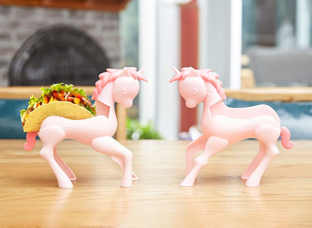 Whether your kiddo is all about tacos, totally into unicorns or loves them both equally, Amazon has a stand that holds two tacos—and it’s a pink unicorn.