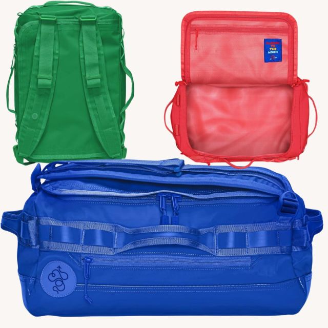 This bold bag fits about 3–5 days worth of clothing plus, it works as a carry-on. (Wanna go bigger? Check out the small duffel here.) The Go-Bag Mini comes in 9 colors and can be worn as a backpack or as a classic duffel using the adjustable strap.