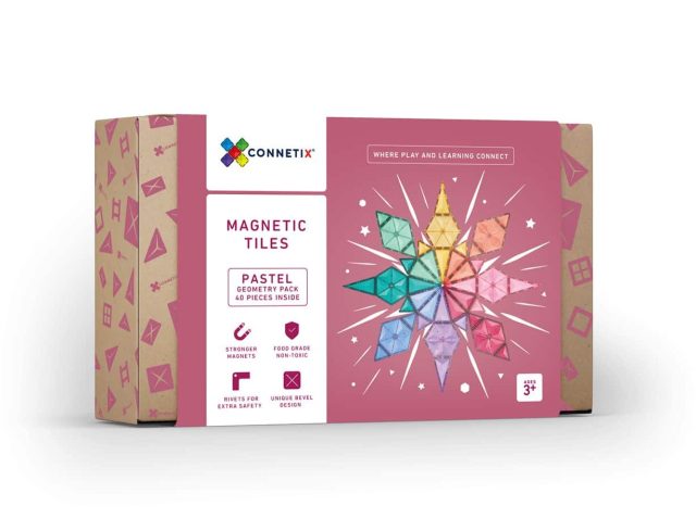 Kiddos will grow with this adorable Connetix set! From abstract shapes to dodecahedrons and hexagons, the Pastel Geometry Pack creates endless opportunities for learning and play.