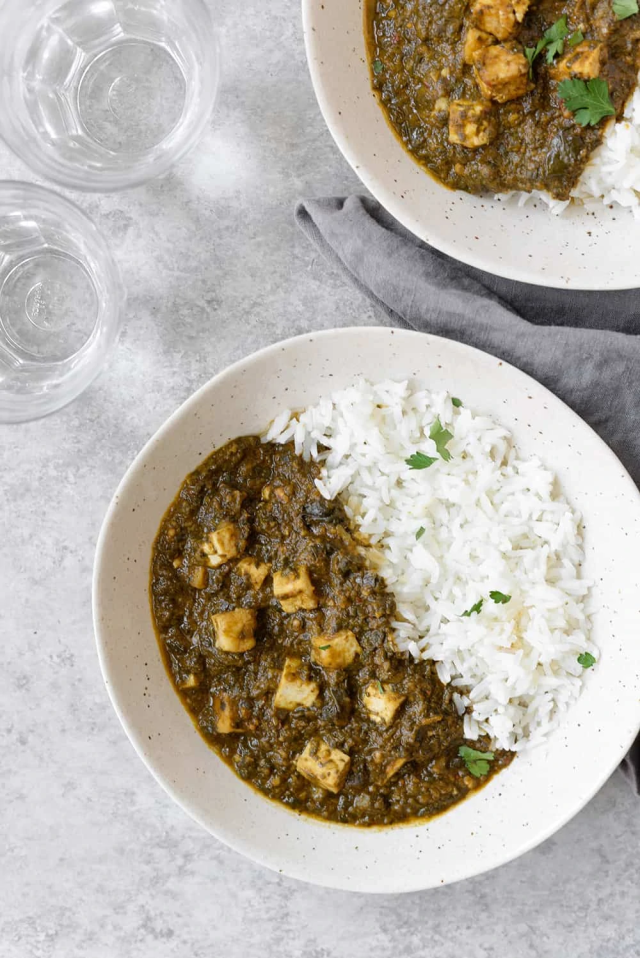 Tons of tofu and spinach come together in this delicious dish that tastes much better than it looks. Once you get past the appearance, get ready to sink your teeth into crispy tofu in a savory saag sauce.
