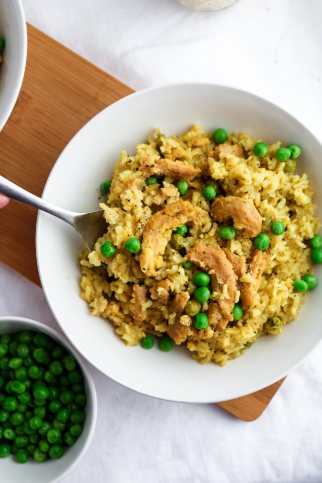 Healthy and gluten free, this "chicken" and rice recipe will pass muster with any kiddo. It takes just six ingredients (one of which is WATER) and three hours to get this tantalizing comfort food ready.