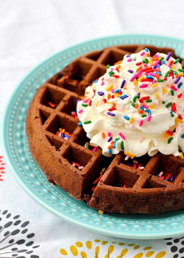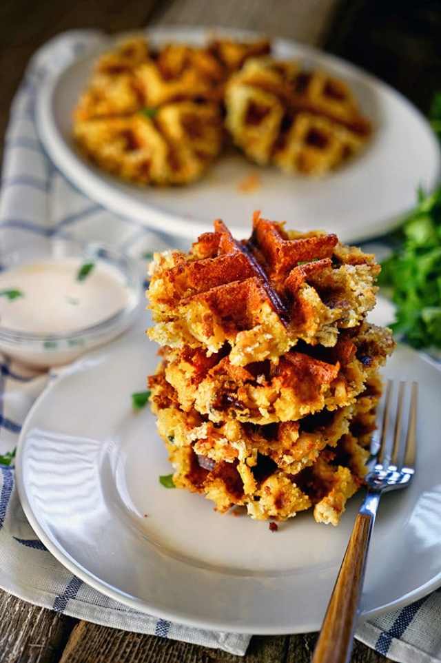 Great for cool autumn nights, these cornbread waffles are a nice twist on the traditional treat. Add in your fave savory sides like bacon and cheese to make this entree-worthy recipe a complete meal. Get the recipe at My Gorgeous Recipes.