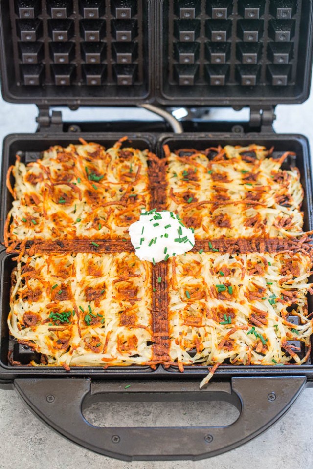 You don't have to settle for soggy or greasy hash browns when you use your waffle iron. Simply pour them on and let the magic happen! They make the perfect side or add-in for your breakfast burrito. Get all the details at Averie Cooks.