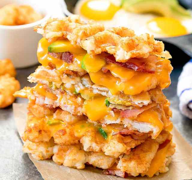 Why settle for a simple tater tot waffle when you can make a tater tot waffle grilled cheese instead? This easier than easy recipe involves adding frozen tots to a waffle maker and smushing into a crispy waffle before adding your cheese and other fixings. Get the recipe at Kirbie Cravings.