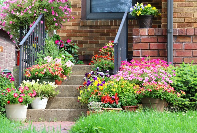 14. Perk up your front porch. A statement door, a fun welcome mat, and flower pots are all easy ways to brighten up your home and your neighborhood.