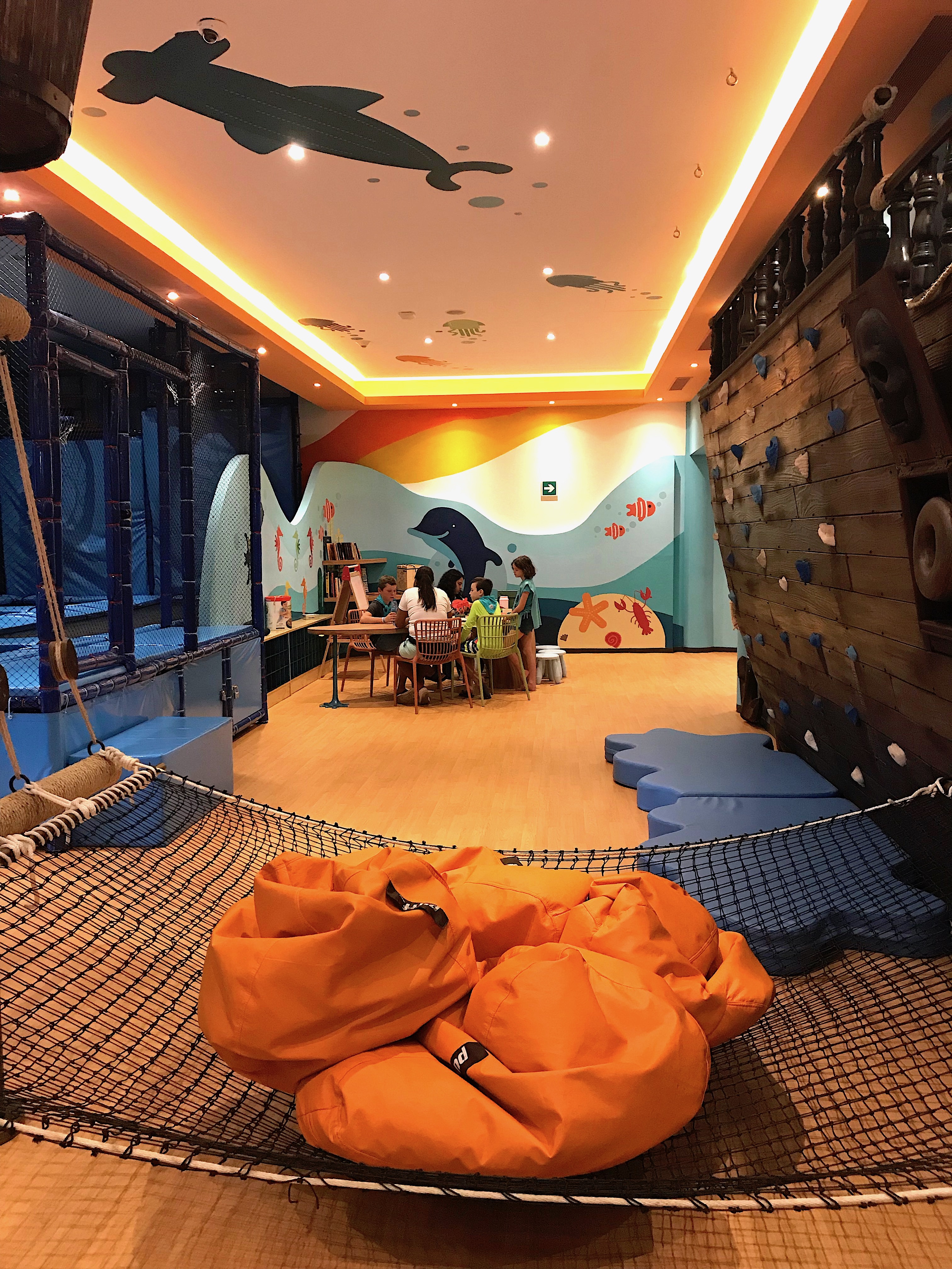 There’s a mini trampoline park, climbing wall, lounge chairs and video games, as well as crafting opportunities.
