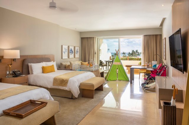 There are 539 suites on the property, and 75 of them are connecting suites, which is ideal for families Almost everything parents with small kids need is available at the Grand Velas. Upon request, kids will be welcomed with a tent, minibar snacks and tiny bathrobes. Essentials like a high chair, strollers, a baby bathtub, crib and a diaper genie are also available, which means you don't have to bring that gear from home. As an added amenity, many of the suites have private plunge pools.