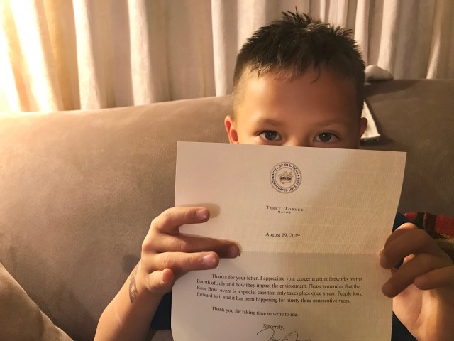 He wrote to our elected leaders with his idea. Then he drew exploding fireworks and signed each letter to the president, senators, and the mayor of the beautiful city we call home.